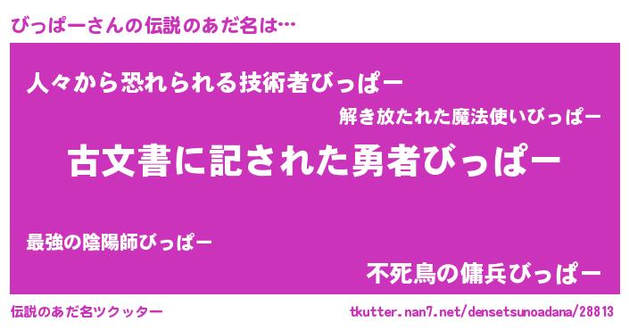| 意味不明あだ名 | 『永久保存びっぱー』『自称びっぱー』 |