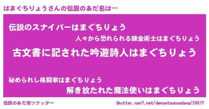 | 意味不明あだ名 | 『永久保存はまぐちりょう』 |
