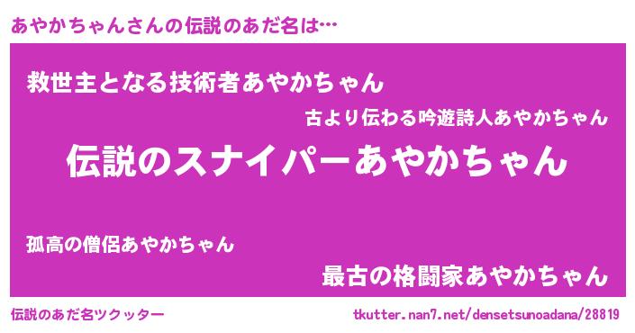 あやかちゃんさんの伝説のあだ名をツクッター!