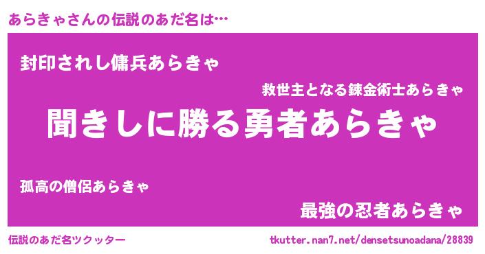 | ヒーロー風カッコイイあだ名 | 『ネオアラキャ』『スーパーアラキャ』 |