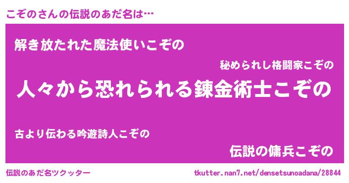 | ファンタジー風あだ名 | 『カークコゾラー』『ゼコゾトゥ』 |