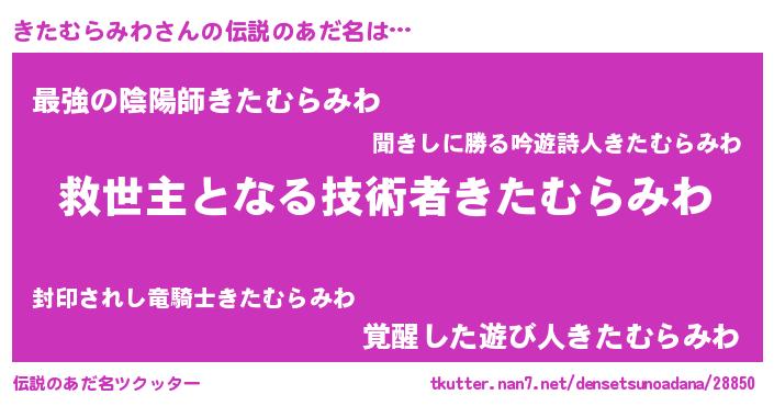 | ヒーロー風カッコイイあだ名 | 『慈愛の使者きたむらみわ』 |