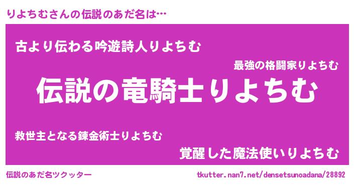 | ヒーロー風カッコイイあだ名 | 『ウルトラ戦士リヨチム』『仮面リヨダー』 |