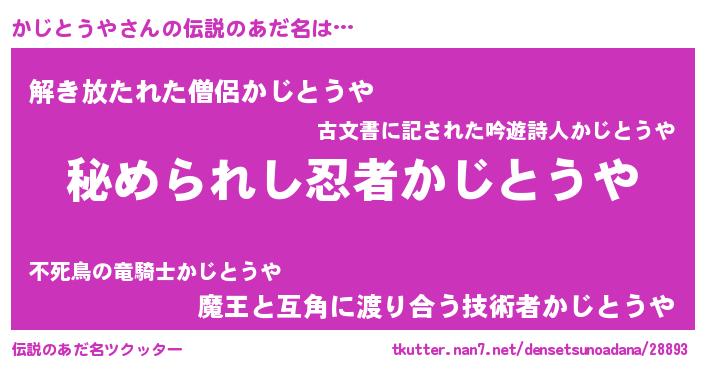 | 男性向けラノベタイトル風あだ名 | 『やはりかじとうやの青春ラブコメはまちがっている 』 |