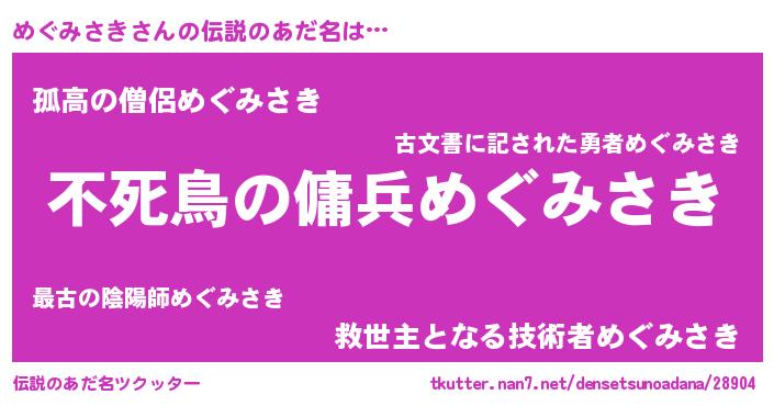 | ヒーロー風カッコイイあだ名 | 『サイバー戦士メグミサキ』 |