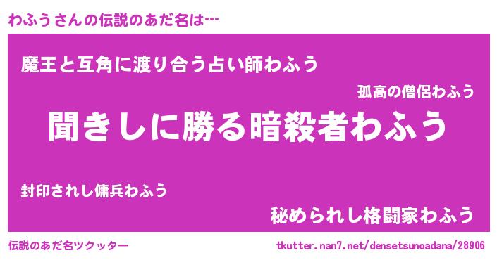 | ヒーロー風カッコイイあだ名 | 『ネオワフウ』『慈愛の使者わふう』 |