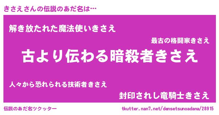 | 男性向けラノベタイトル風あだ名 | 『きさえに滅ぼされるだけの簡単なお仕事です』 |