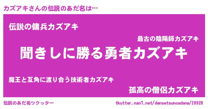 | ヒーロー風カッコイイあだ名 | 『ネオカズアキ』『スーパーカズアキ』 |