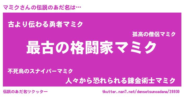 | 意味不明あだ名 | 『マミクフォーエバー』『自称マミク』 |