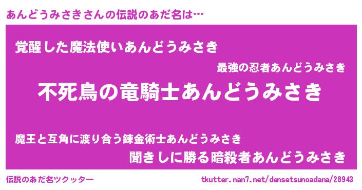 | 男性向けラノベタイトル風あだ名 | 『転生したらあんどうみさきだった件』 |