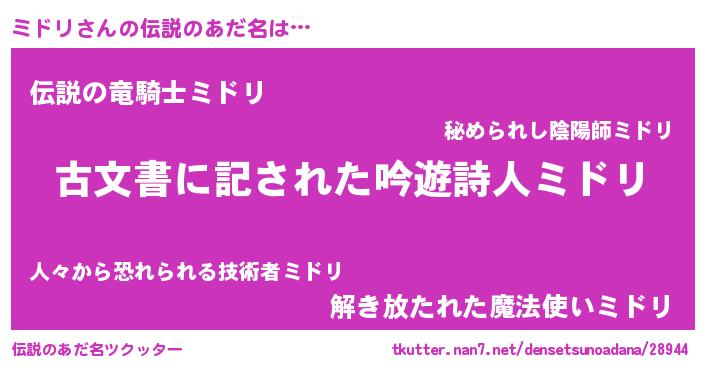 | ヘコむあだ名 | 『ミドリ(小並感)』『ミドふぇ~』 |