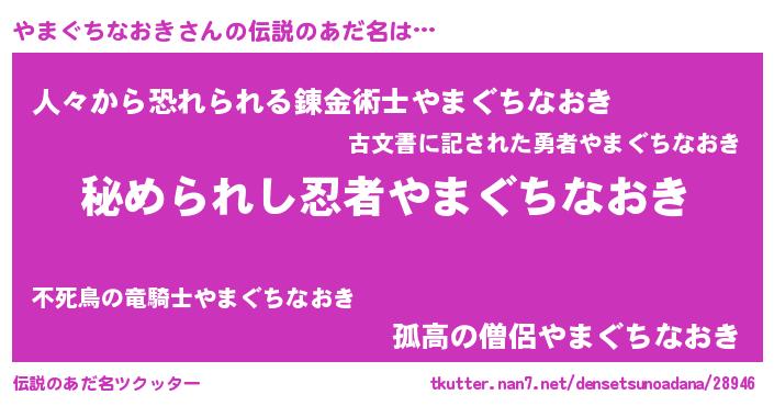 | 女子向けラノベタイトル風あだ名 | 『シンデレラやまぐちなおき家の靴箱館』 |