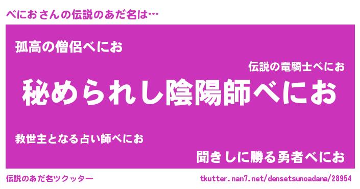 | 意味不明あだ名 | 『しいたけ科べにお属』『自称べにお』 |