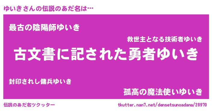 | 意味不明あだ名 | 『永久保存ゆいき』『自称ゆいき』 |