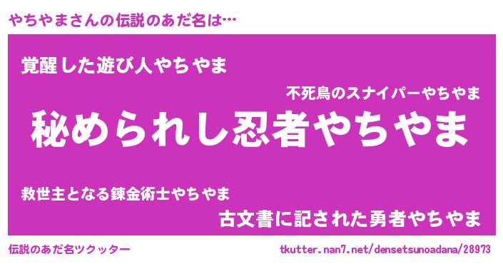 | 意味不明あだ名 | 『めかぶ科やちやま属』『自称やちやま』 |