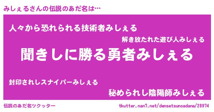 | 意味不明あだ名 | 『永久保存みしぇる』『自称みしぇる』 |