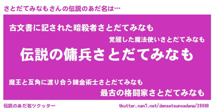 | 意味不明あだ名 | 『住所不定無職さとだてみなも(41歳)』 |