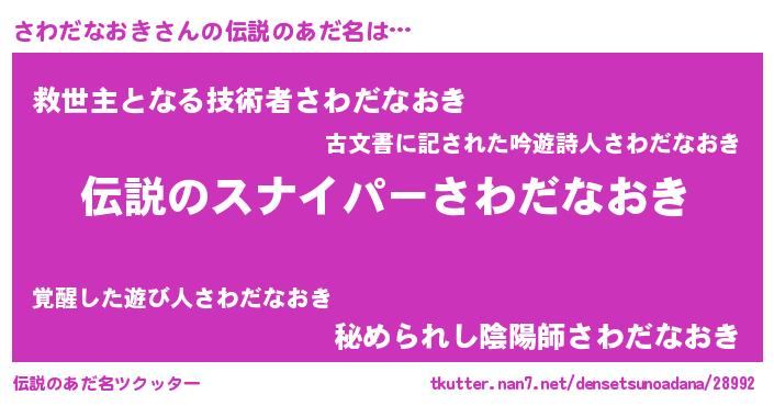 | 胡散臭い通販商品みたいなあだ名 | 『必ず成功する霊験あらたかなお札…その名も「さわだなおき」』 |