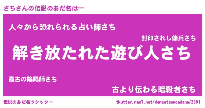 | ヒーロー風カッコイイあだ名 | 『幻影騎士サチ』『超時空戦士サチ』 |
