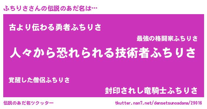 | 男性向けラノベタイトル風あだ名 | 『おまえをオタクにしてやるから、俺をふちりさにしてくれ! 』 |