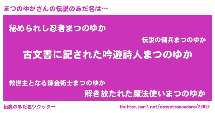 | 意味不明あだ名 | 『永久保存まつのゆか』 |