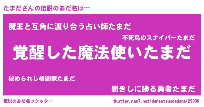 | ヒーロー風カッコイイあだ名 | 『天弓騎士タマ』『愛の使者たまだ』 |