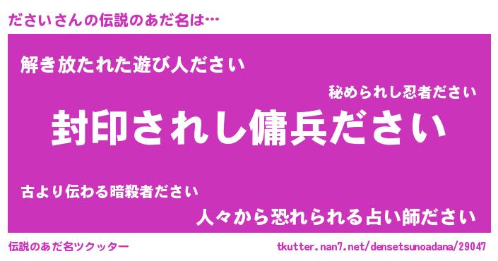 | ヒーロー風カッコイイあだ名 | 『仮面ダサダー』『スーパーダサイ』 |