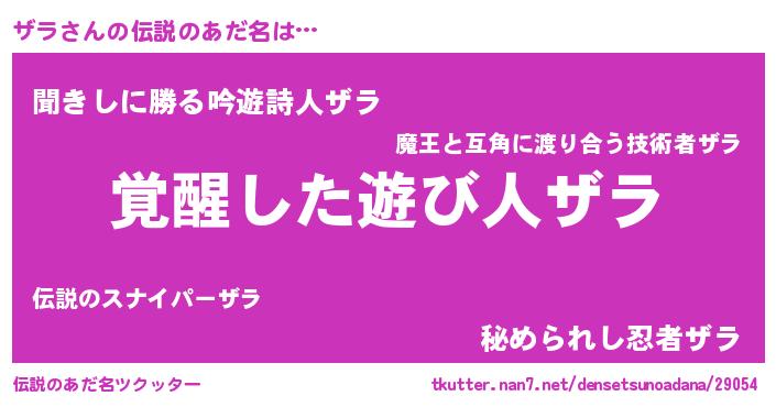 | 意味不明あだ名 | 『とにかく怪しいザラ』『自称ザラ』 |