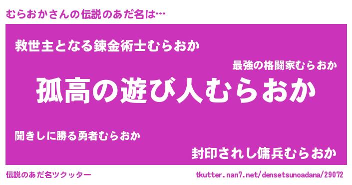 | ヒーロー風カッコイイあだ名 | 『魔戒騎士ムラ』『慈愛の使者むらおか』 |