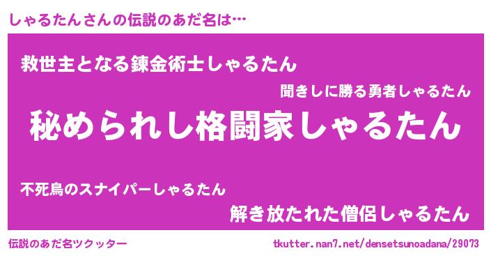 | 男性向けラノベタイトル風あだ名 | 『シャルタンスレイヤー』 |