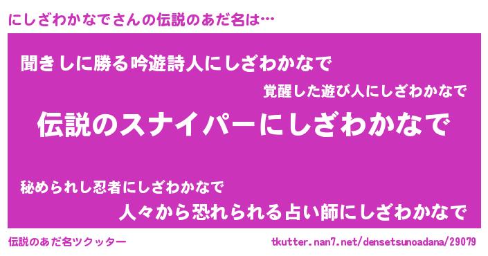 | 肩書あだ名 | 『にしざわかなで大将』 |