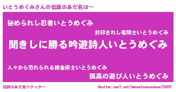 | 男性向けラノベタイトル風あだ名 | 『いとうめぐみという概念が存在しない退屈な世界 』 |