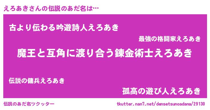 | 女子向けラノベタイトル風あだ名 | 『えろあき恋絵巻』『えろあき様がみてる』 |