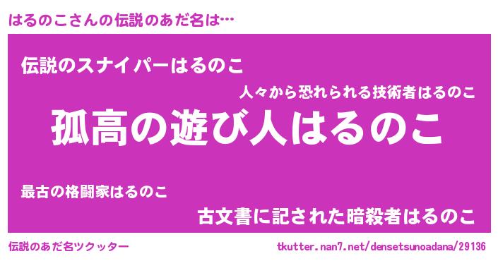 | 意味不明あだ名 | 『住所不定無職はるのこ(86歳)』 |