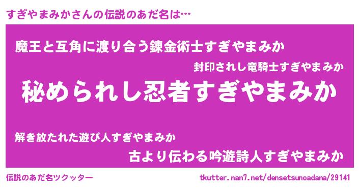 | ファンタジー風あだ名 | 『エターナルスギヤマミカー』 |