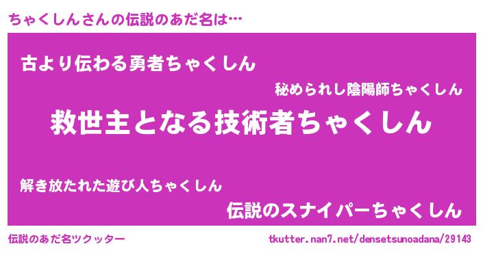| ヒーロー風カッコイイあだ名 | 『慈愛の使者ちゃくしん』『仮面チャダー』 |