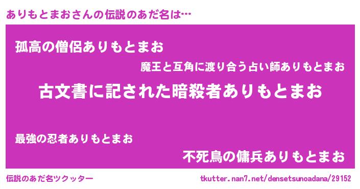 | ヘコむあだ名 | 『ありもとまお(笑)』『ありお』 |