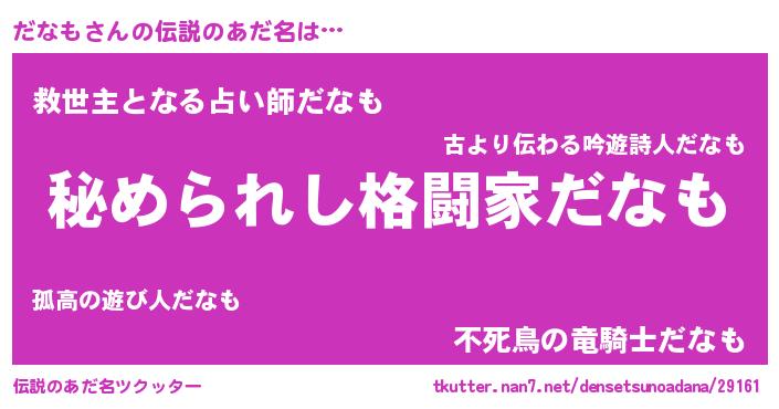 | 肩書あだ名 | 『だなも中佐』『だなも総理大臣』 |