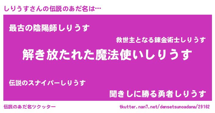 | ヒーロー風カッコイイあだ名 | 『仮面シリダー』『魔戒騎士シリ』 |