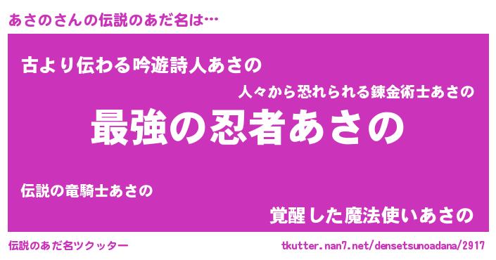 | ファンタジー風あだ名 | 『エターナルアサノー』『アサディッシュ』 |