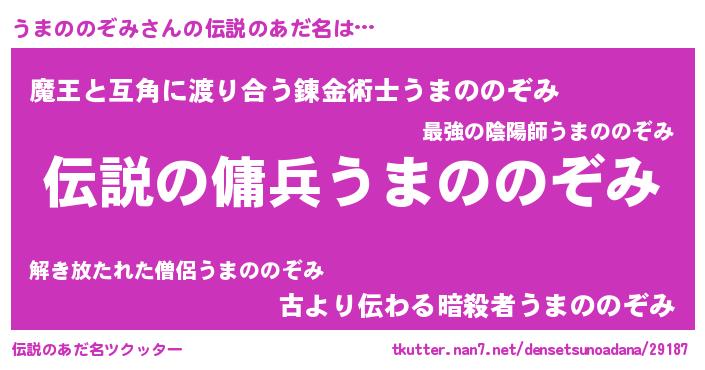 | 意味不明あだ名 | 『自称うまののぞみ』 |