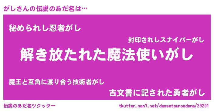 | ヒーロー風カッコイイあだ名 | 『銀牙騎士ガシ』『ウルトラがしマン』 |