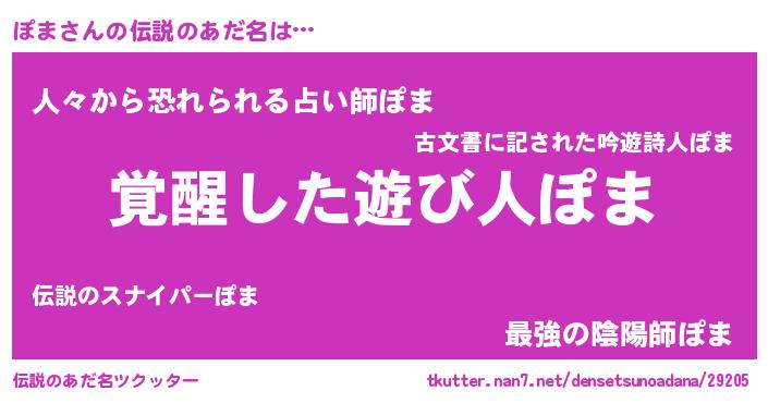 | 意味不明あだ名 | 『とにかく怪しいぽま』『自称ぽま』 |