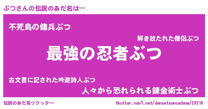| ヒーロー風カッコイイあだ名 | 『ウルトラぶつマン』『サイバー戦士ブツ』 |