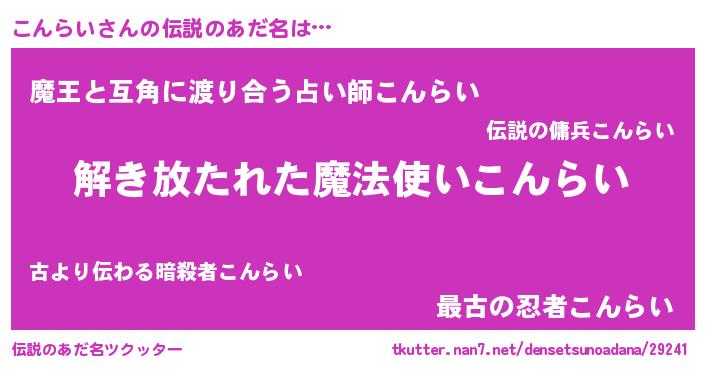 | 胡散臭い通販商品みたいなあだ名 | 『世界中を虜にした100年もののヴィンテージワイン…その名も「こんらい」』 |