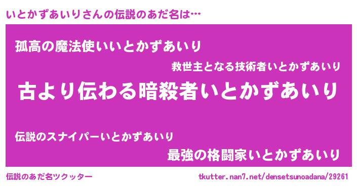 | ヘコむあだ名 | 『いとかずあいり(笑)』『いとを』 |