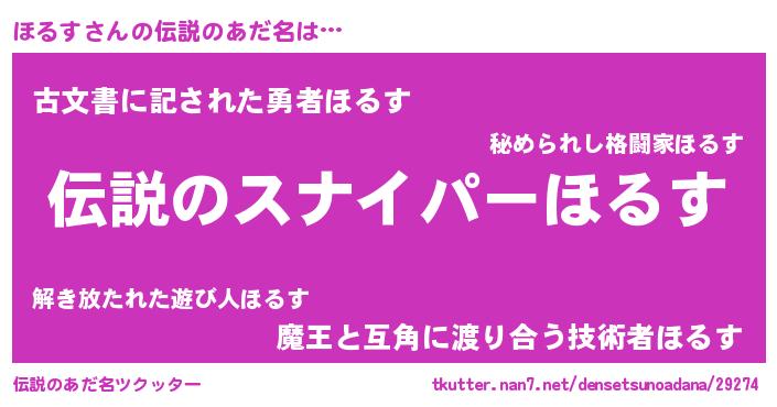 | 胡散臭い通販商品みたいなあだ名 | 『必ず成功する霊験あらたかなお札…その名も「ほるす」』 |