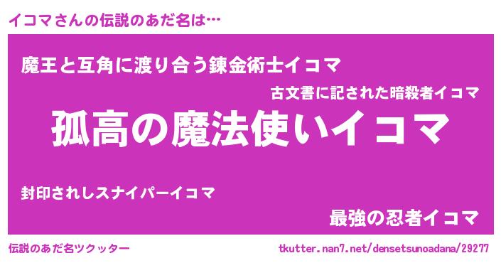 | 男性向けラノベタイトル風あだ名 | 『魔法科高校のイコマ』 |