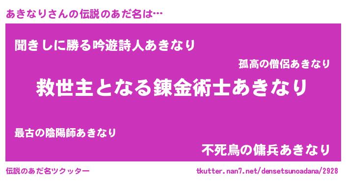 | ヒーロー風カッコイイあだ名 | 『究極戦士アキナリ』『ネオアキナリ』 |