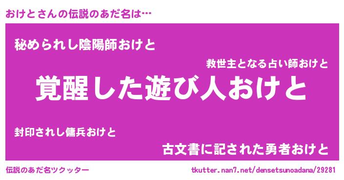 | ヒーロー風カッコイイあだ名 | 『最強戦士オケト』『暗黒騎士オケ』 |